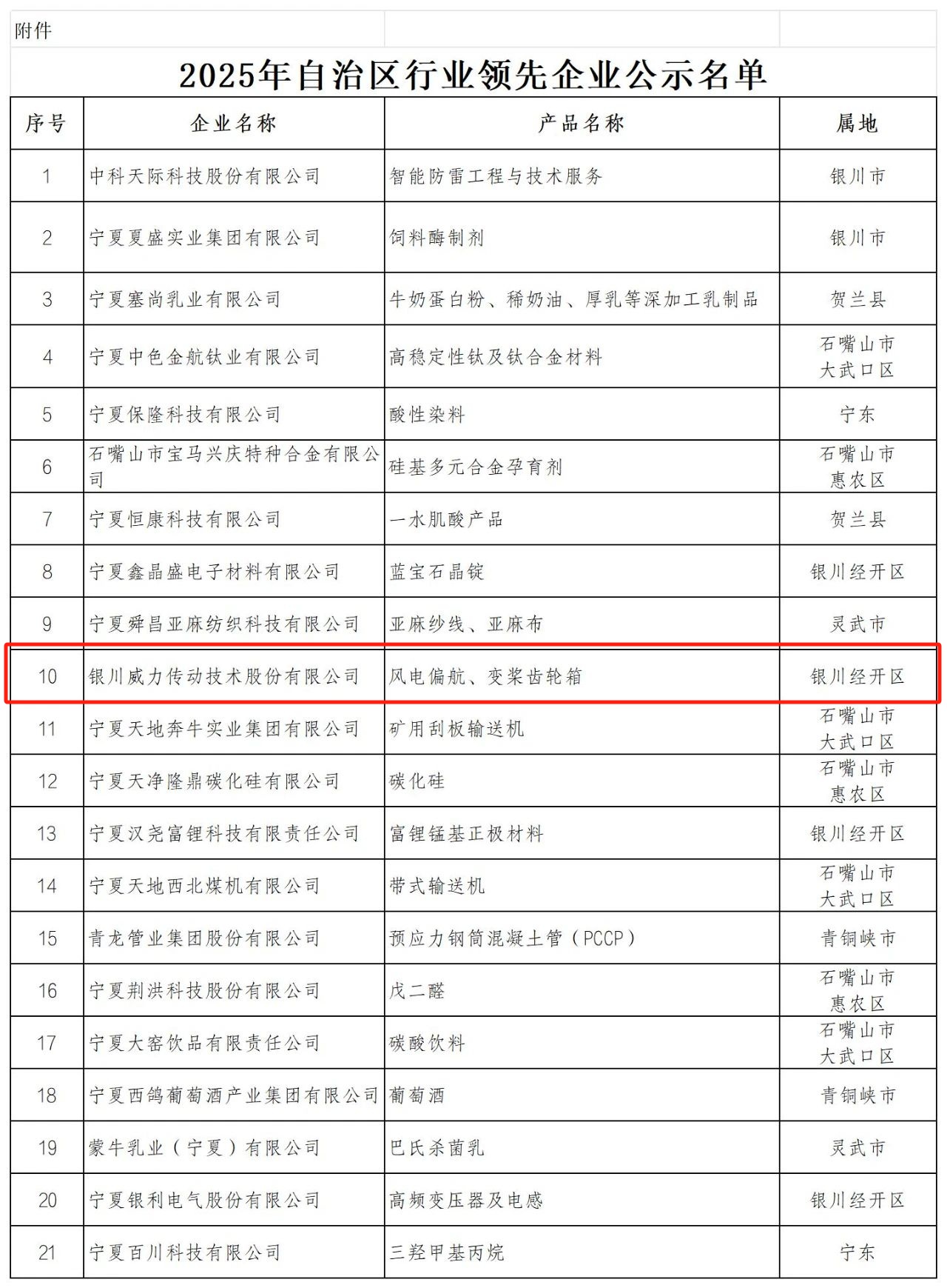 喜訊 | 威力傳動榮膺2025年自治區行業領先企業